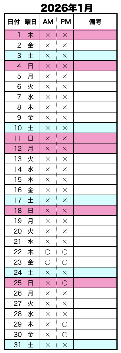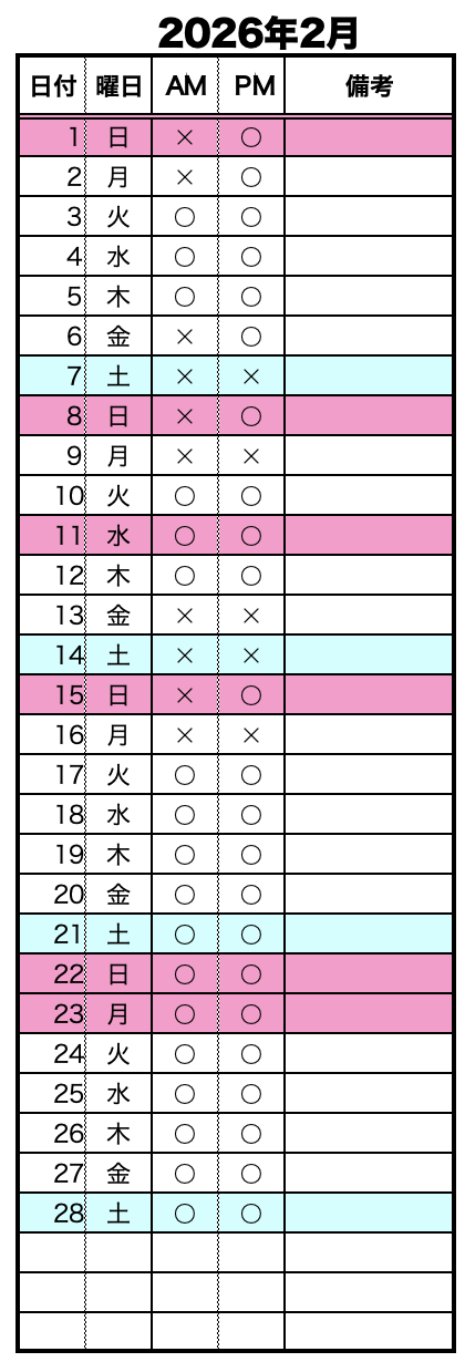 ※AMは8:30〜、PMは13:30〜 になります。