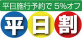 当サイト内にある予約状況のページとにらめっこしながら、平日(土・日・祝日以外の日)で○の付いている日に依頼するメニューの施行が平日のみで可能になるようにご予約していただければ全体から5%をドーンと引いちゃいますよ〜