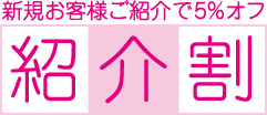さらに紹介した方も、新規の方を紹介していただける度に5%引を適用しますので、毎回お得が続きますね〜
