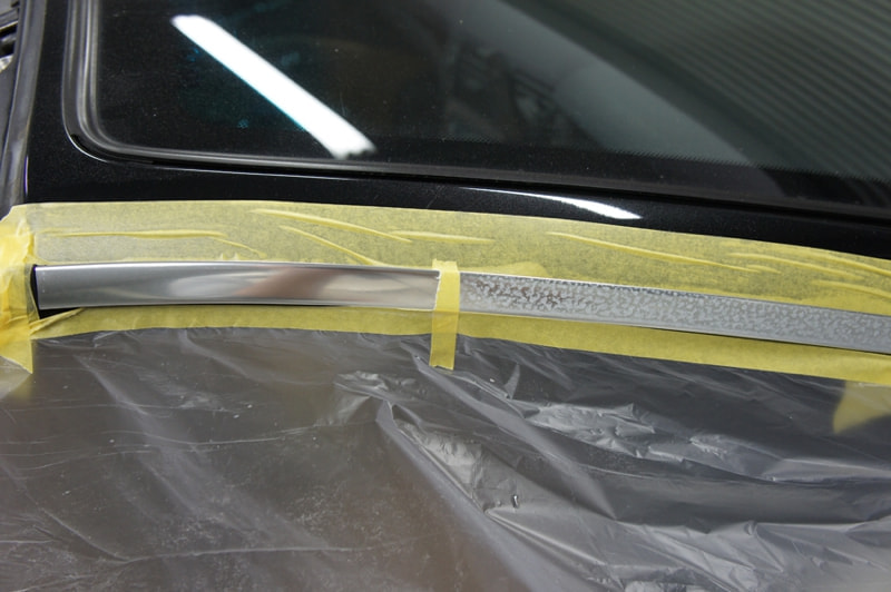 本サービスは、雨や紫外線などでガビガビに腐食したアルミ製のメッキモールを、新車当時の状態近くまで腐食部分を落とし、下に隠れたクリアな部分の面を出して、ピッカピカのモールに復活させるメニューです。