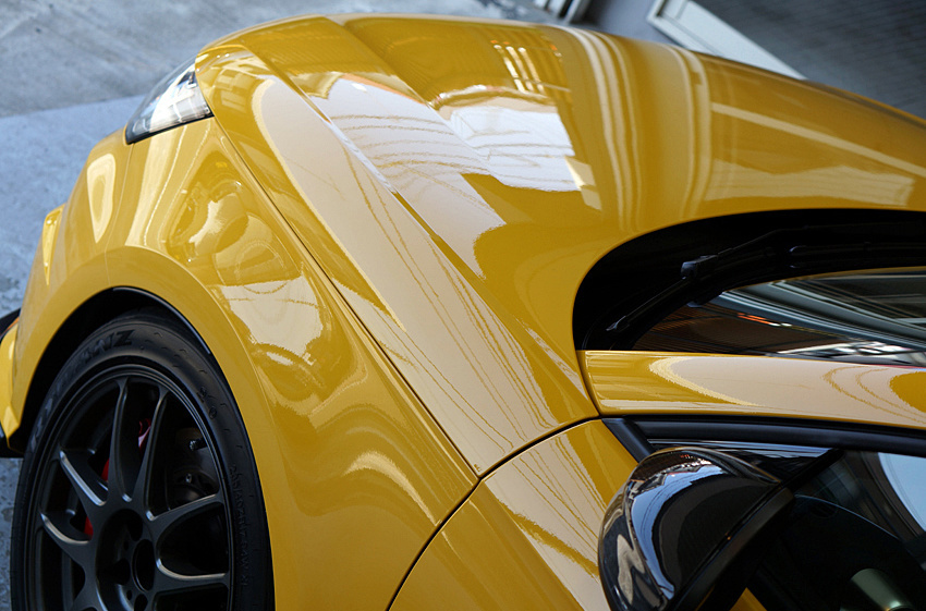 皮膜は当店史上、最高峰のぶ厚いものになりますので、塗装や既存のコーティングの表面についた傷を滑らかに埋め、目立たなくさせる効果もあります。しかも、その超膜厚のおかげで、ガラスの特徴である絶縁性により、静電気が著しく低減するという副産物も得られます。